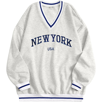 テリーフリースVネック長袖スウェットシャツ文字グラフィック特大デザインカジュアルトップ